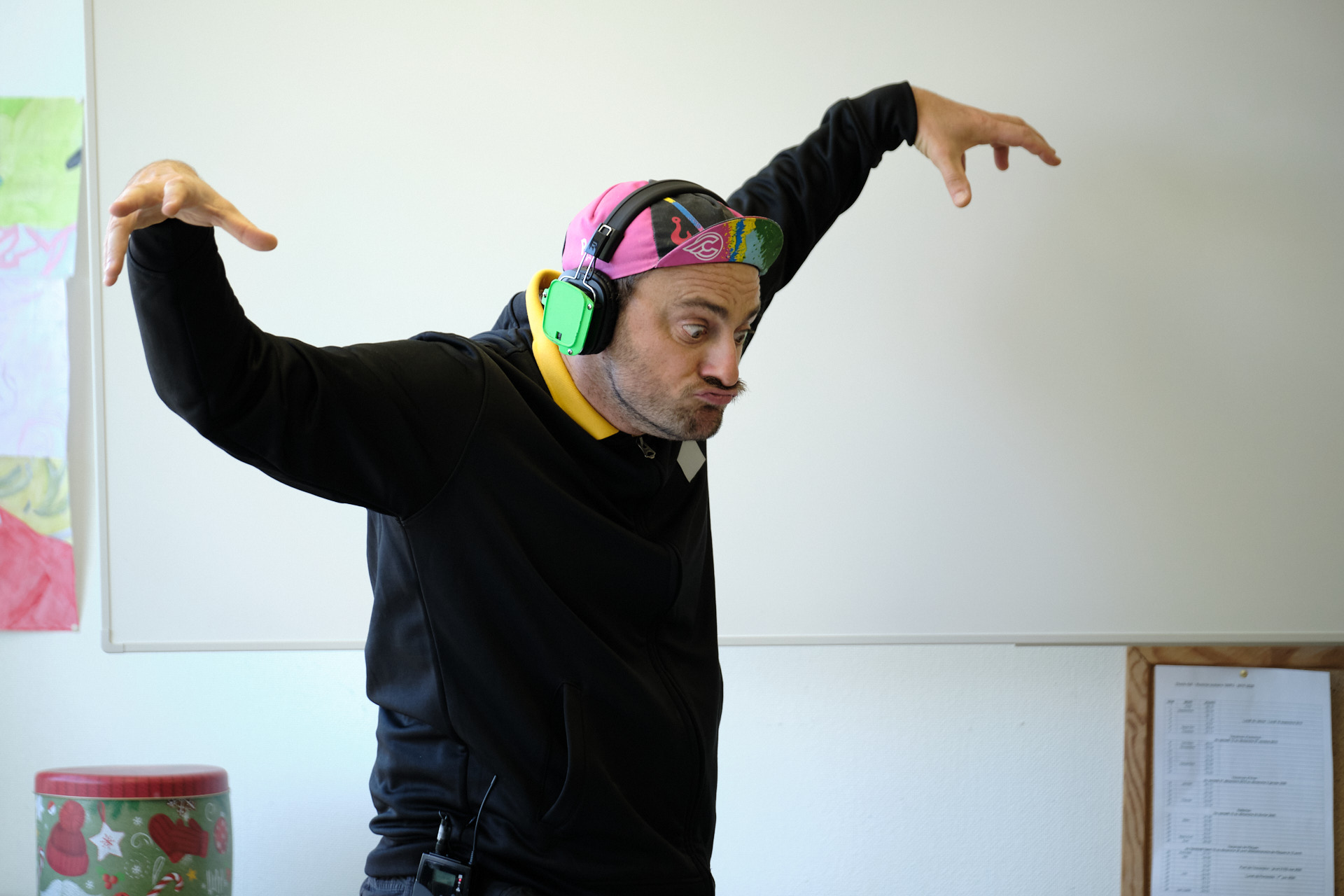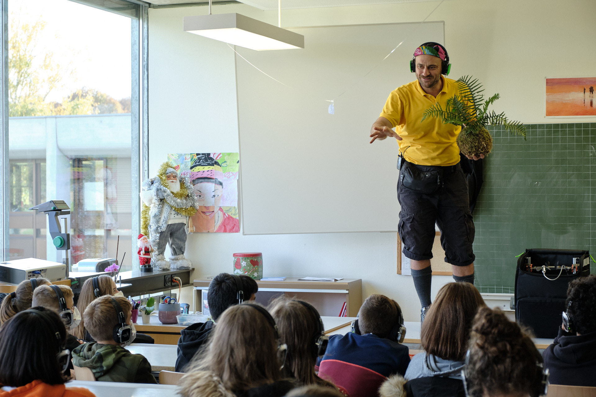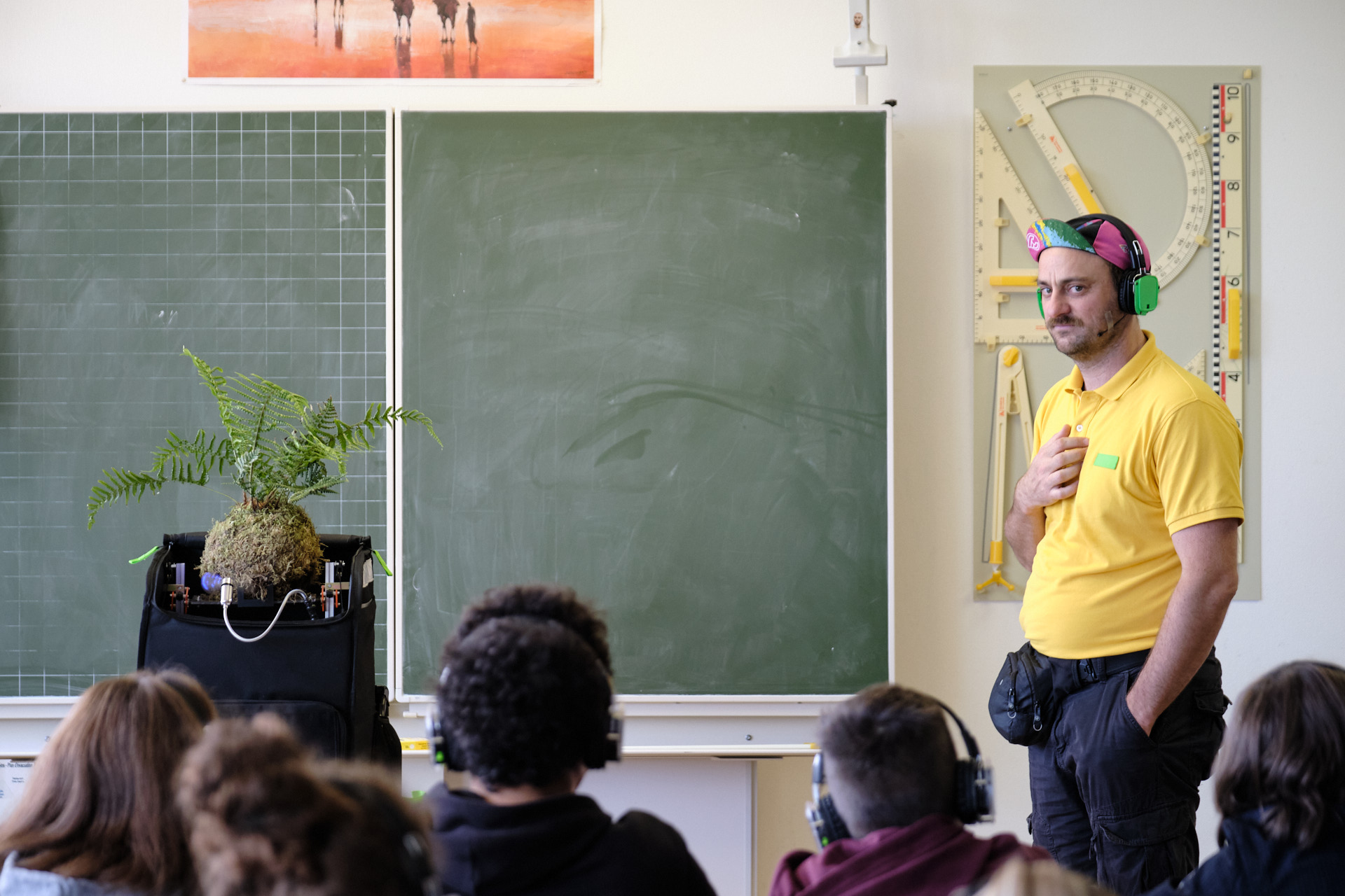 Coutumier des salles de théâtre obscurcies où il fait bon avoir repéré l’espace avant le début du filage, Philippe Weissbrodt se retrouve dans une salle de cours du Collège des 3 Sapins, à Échallens, avec deux classes secondaires le temps d’une représentation d’Arboresence programmée; un spectacle atour de l’écologie de Muriel Imbach, pensé “hors les murs” et produit par le Théâtre Vidy-Lausanne…