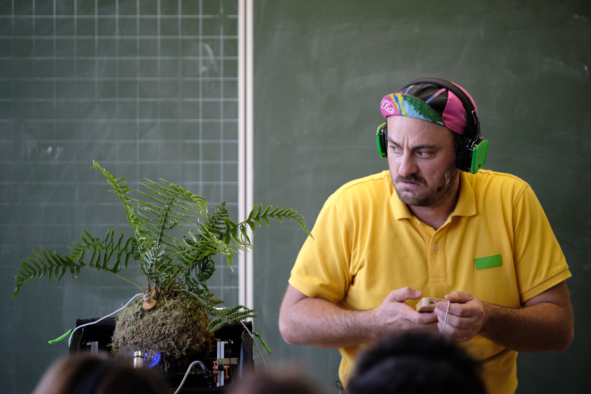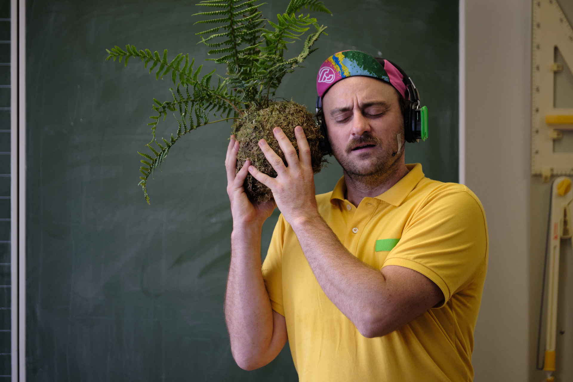 Porté par un comédien, sorte de scientifique un peu fou et attachant, le spectacle aborde les questions d’environnement et d’écologie “par la marge”, de manière sensible et poétique plutôt que frontale et didactique, en faisant appel à l’imaginaire des jeunes spectateurs·rices. Partant de la question “En quoi le monde végétal pourrait-il nous inspirer?”, Muriel Imbach tisse des liens entre la communication humaine sur les réseaux sociaux, les données invisibles d’Internet et les réseaux également invisibles de communications, d’échanges et de forces reliant les éléments d’une forêt.