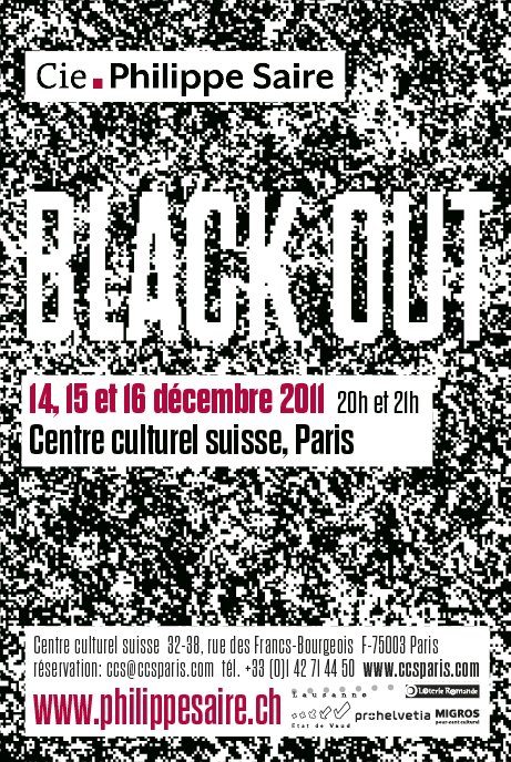 Black out | annonces presse Annonces print ou web pour le spectacle Black out, Compagnie Philippe Saire Projet parent Black out Client Compagnie Philippe Saire Catégorie annonce Publié le 18 novembre 2011 Images