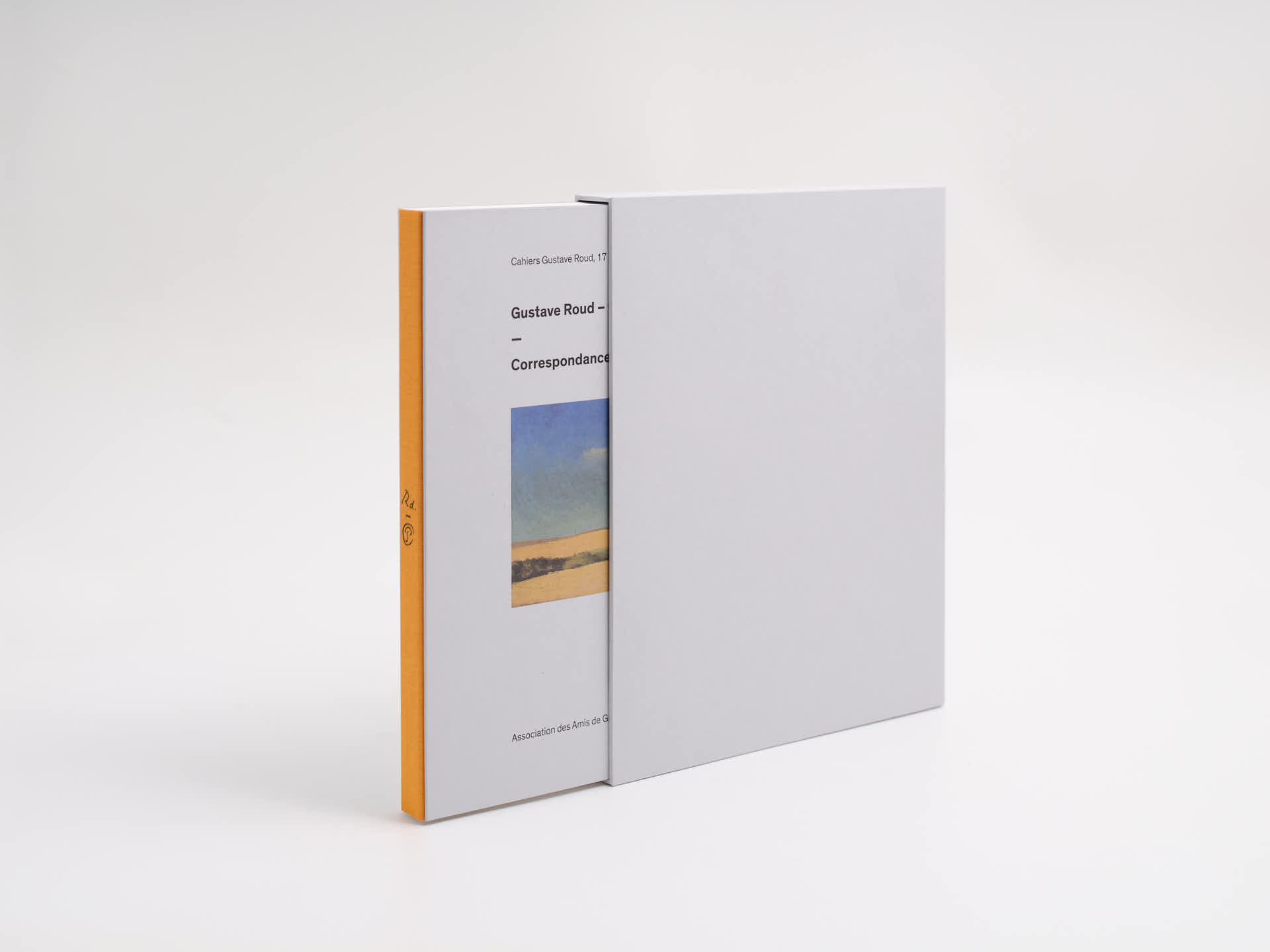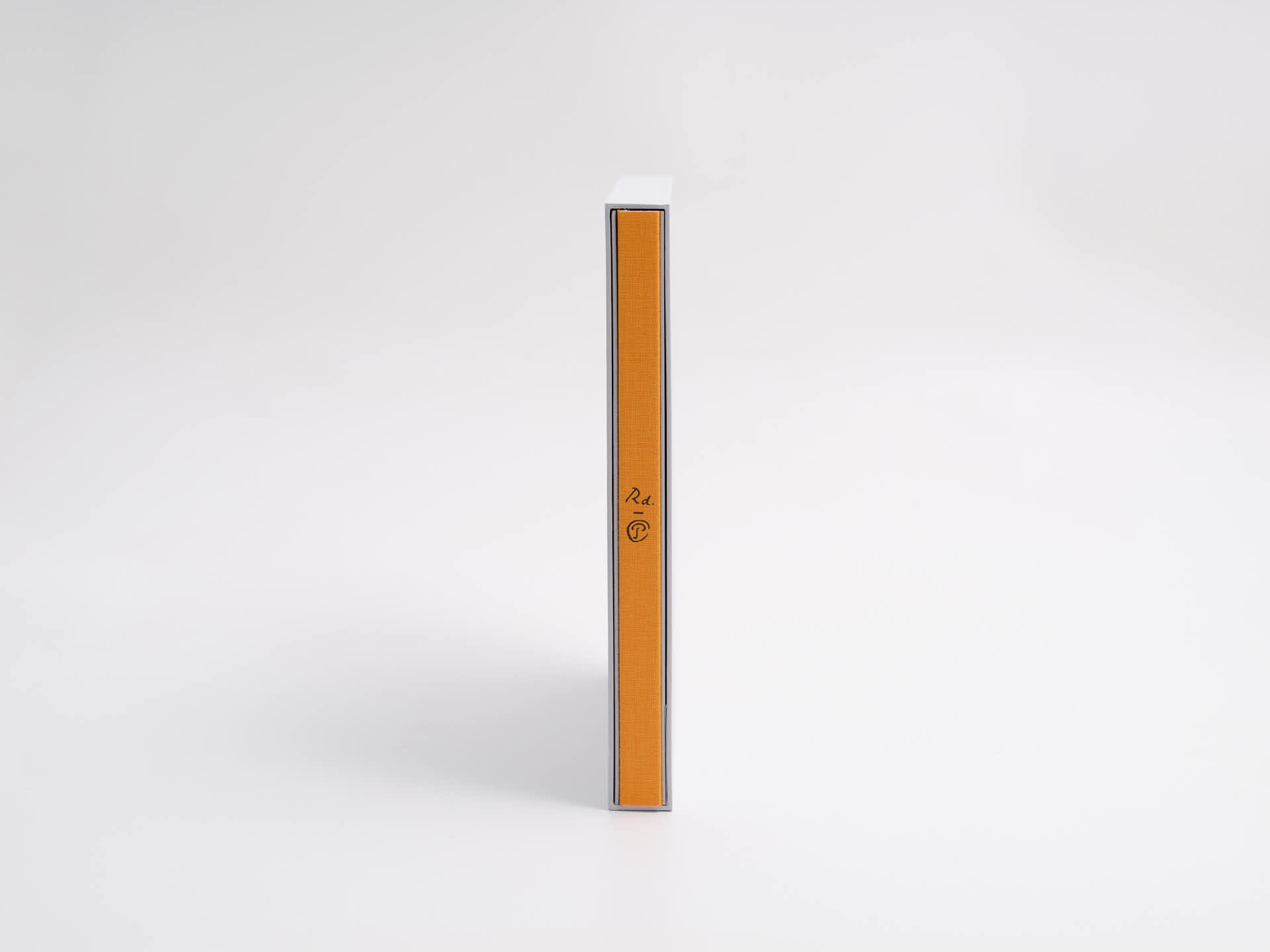 La publication est protégée dans un étui rigide neutre, également en Wibalin 546 Silver Grey. Dans son étui, seul le dos toilé orange monogramme renseigne sur le contenu de cette édition rare.