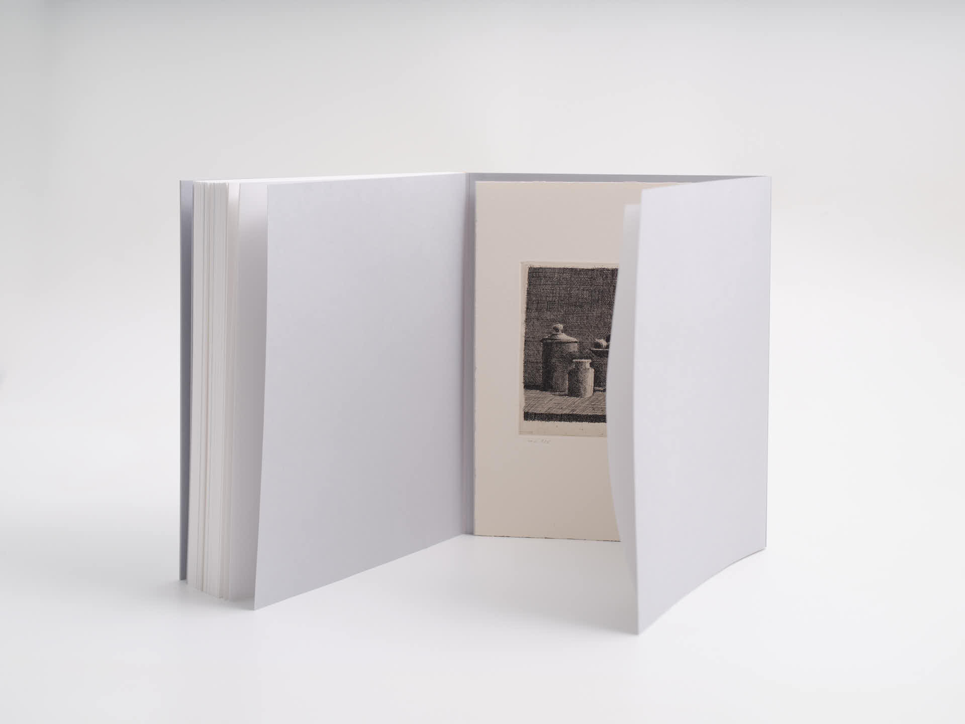 En fin d’ouvrage, les pages de garde présentent un rabat qui permet d’intégrer une gravure originale de Gérard de Palézieux, tirée par l’Atelier de St-Prex.