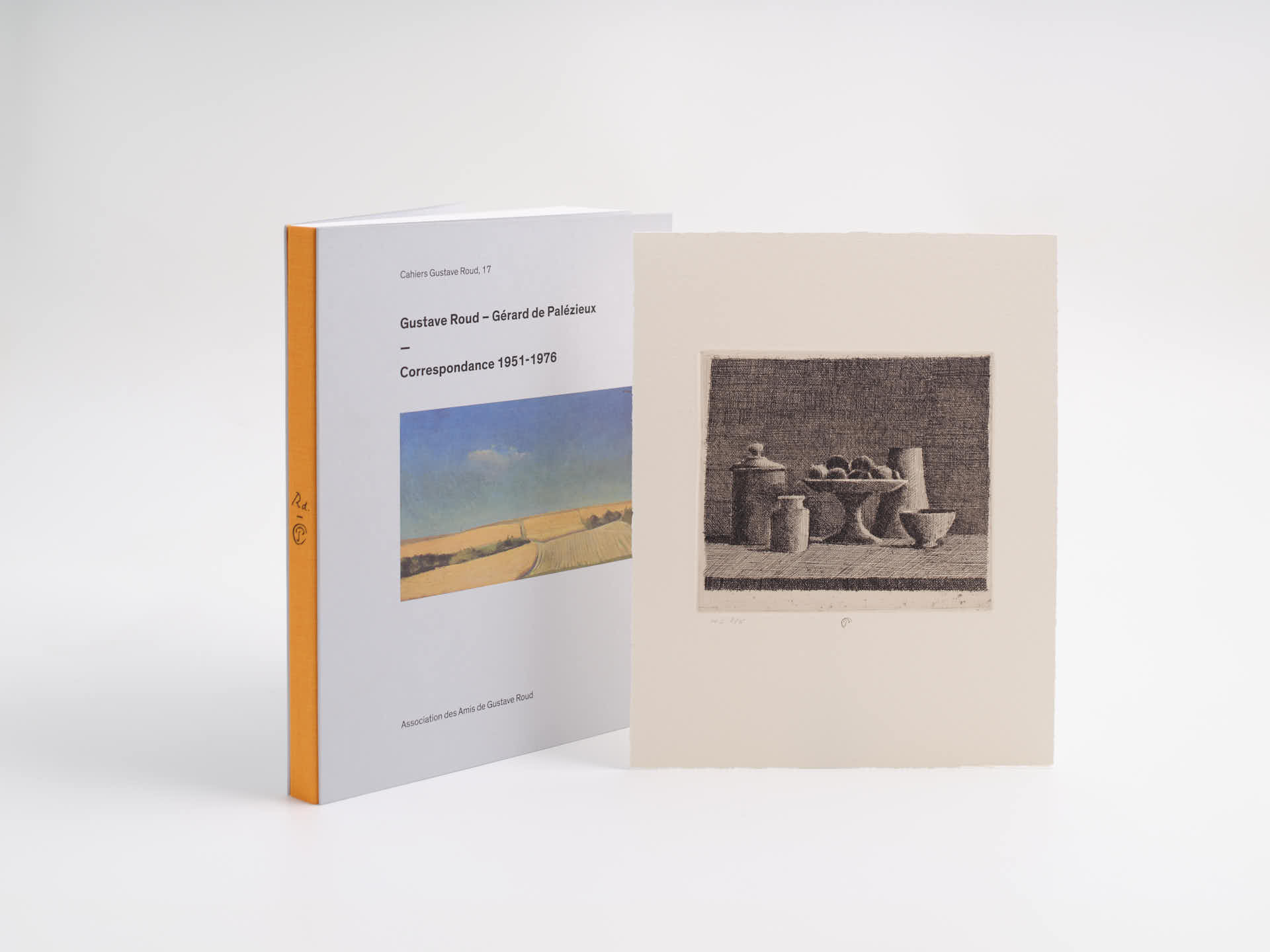 Le Wibalin 546 Silver Grey, également imprimé en offset, a été utilisé comme base pour cette édition en couverture rigide et dos souple. Le dos toilé présente les monogrammes timbrés à chaud des deux artistes dont l’Association des Amis de Gustave Roud publie ici la relation épistolaire.