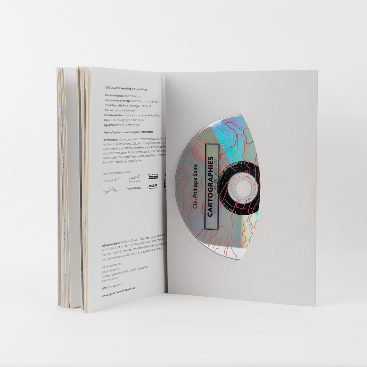 Reliure: cahier piqué-pli, 2 agrafes noires, couverture à rabats avec fente pour DVD