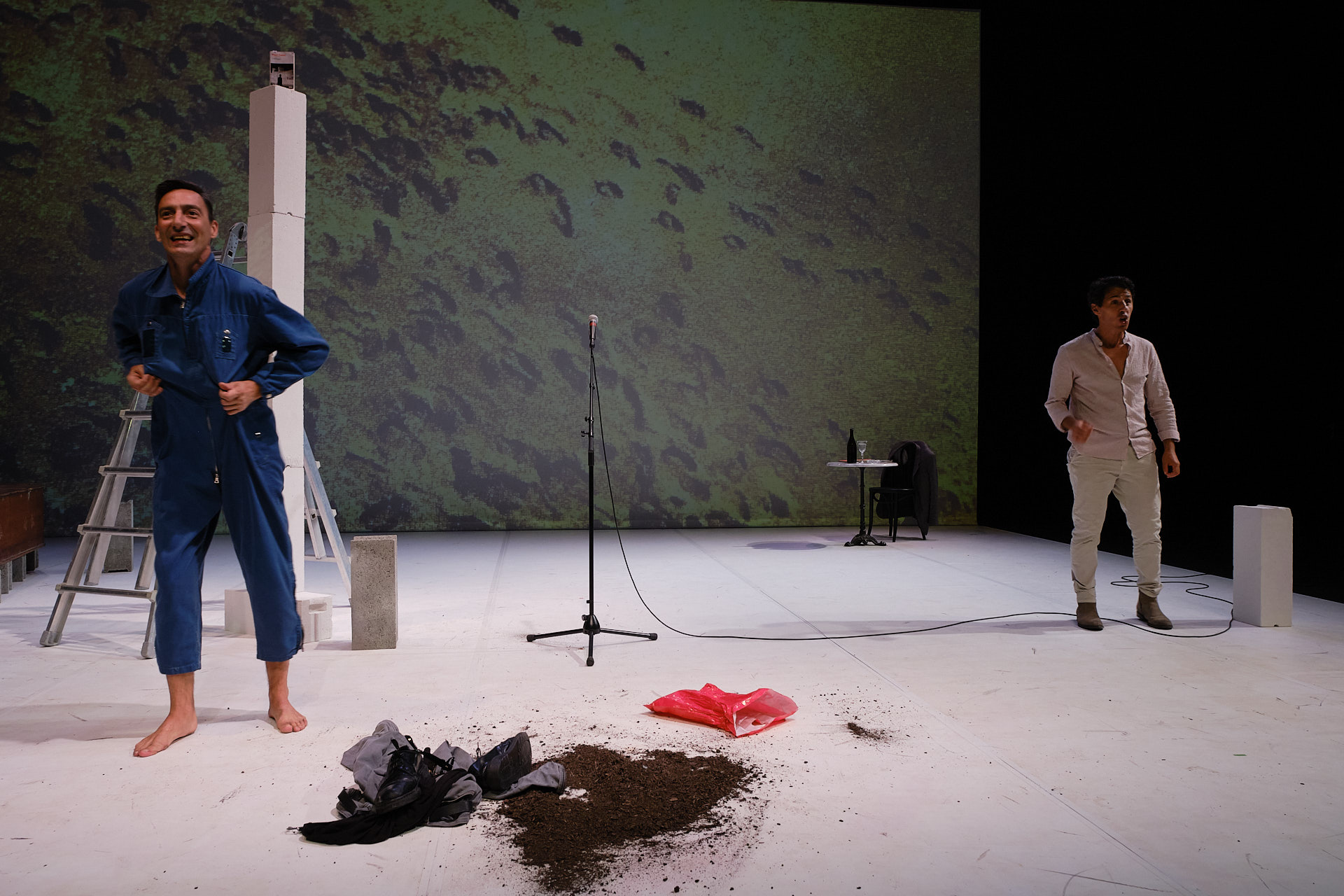Avec deux acteurs, Nicolas Stemann prolonge le roman en mettant en scène la rencontre entre Moussa et Meursault, mais aussi entre Camus et Daoud. Comment cette rencontre peut-elle avoir lieu aujourd’hui, près de soixante ans après l’indépendance algérienne? Comment la décolonisation influe-telle encore sur la vie des uns et des autres, de part et d’autre de la Méditerranée?
