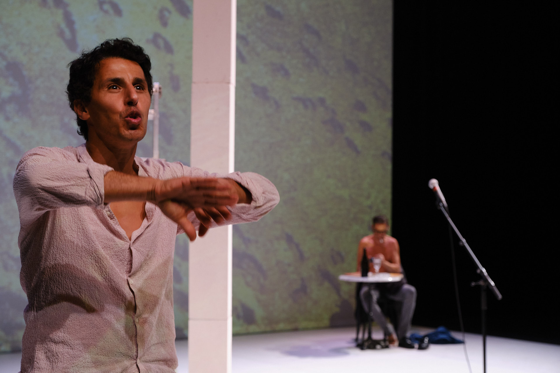 Le metteur en scène allemand Nicolas Stemann, aujourd’hui directeur du Schauspielhaus de Zürich, prend pour point de départ le roman qui révéla l’écriture incisive de l’Algérien Kamel Daoud au monde entier, Meursault contre-enquête: la quête obstinée de Moussa, qui pense être le frère de l’Arabe tué dans L’Étranger. Ce frère n’a pas de nom alors qu’il est à l’origine de la profonde réflexion métaphysique de Meursault sur la place de l’homme dans le monde.