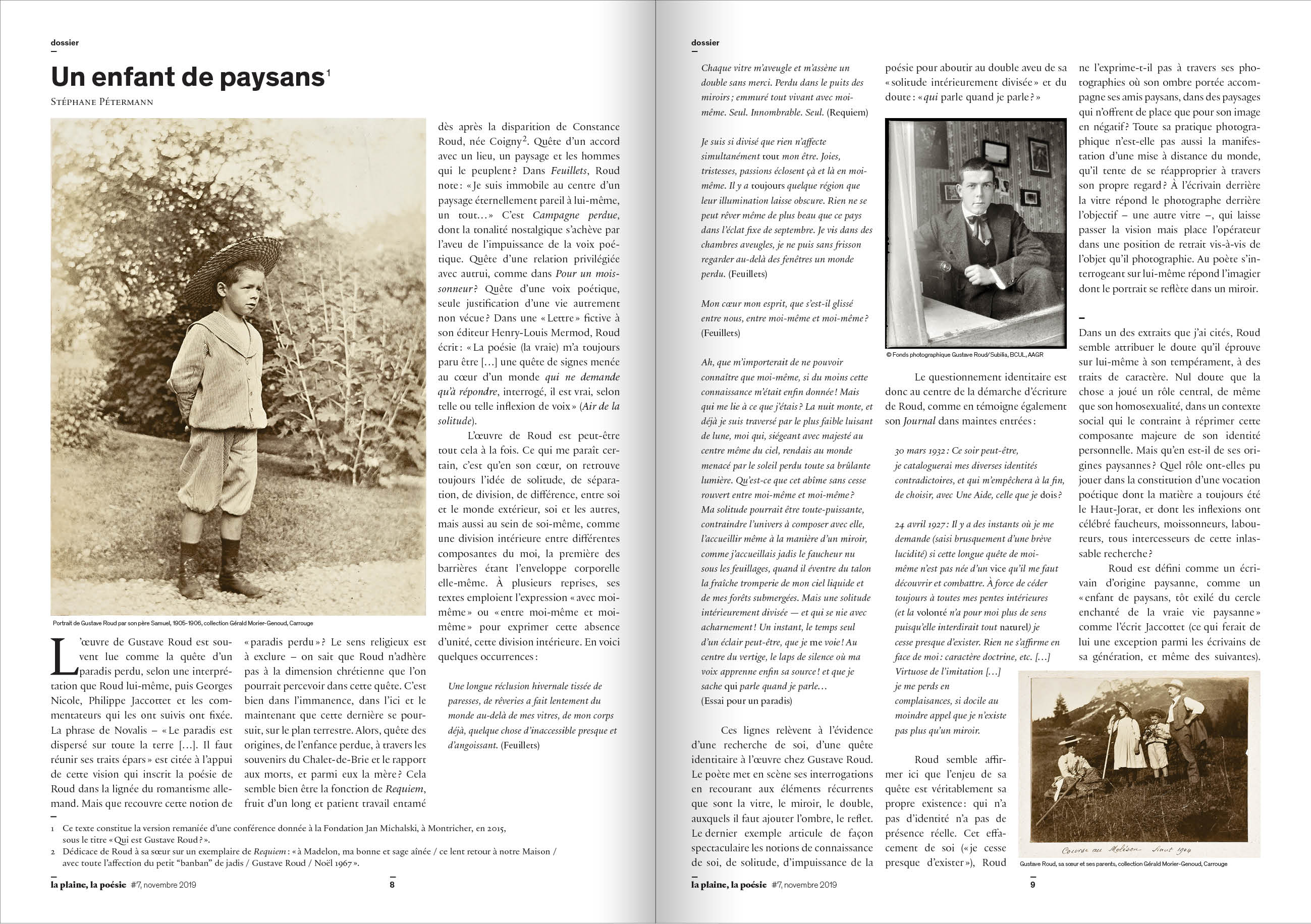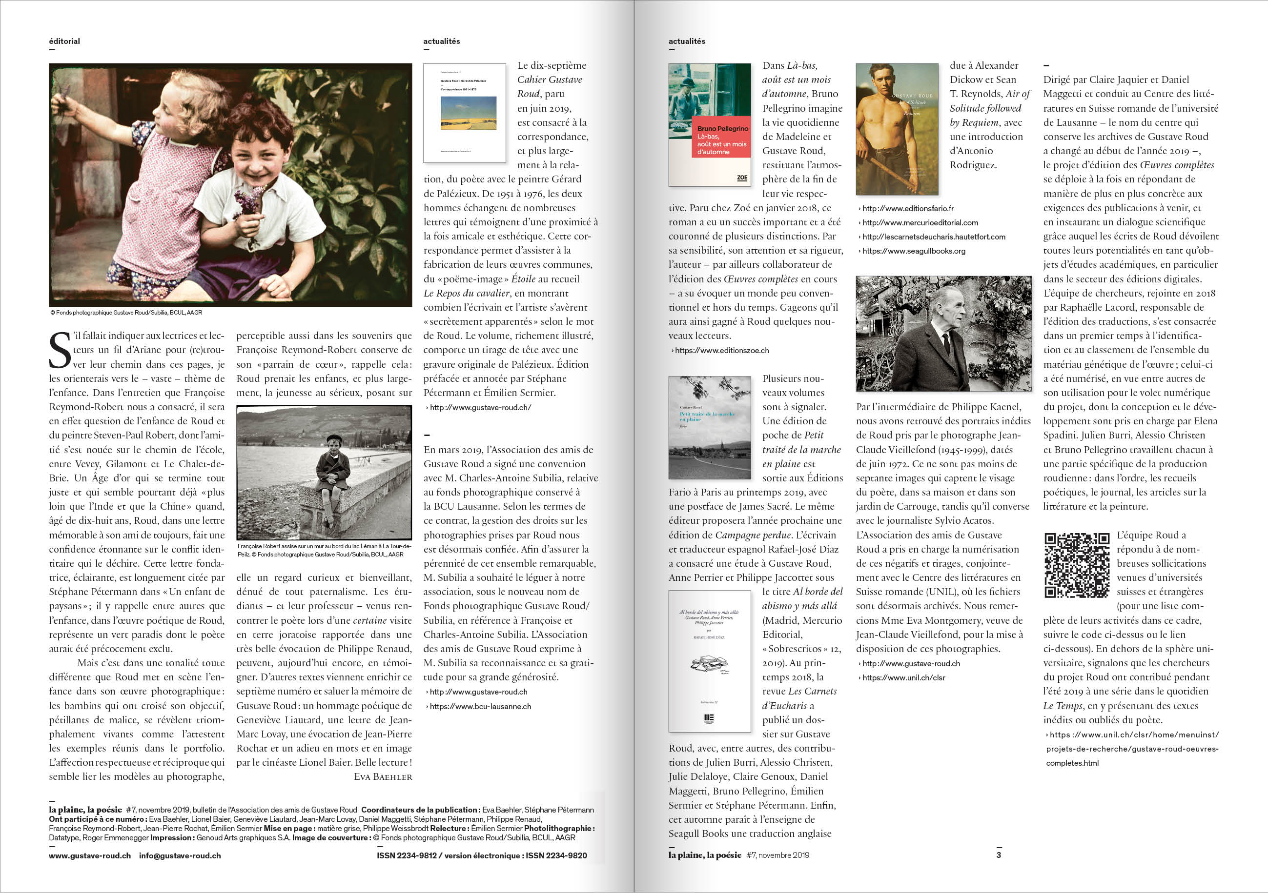 Ce septième bulletin de l’Association des Amis de Gustave Roud permet à matière grise de se frotter à nouveau à la maquette mise en place pour le #6, deux ans auparavant. Sujets et calibrages des textes changent. Mais le système mis en place en 2017 s’avère robuste, et accueille facilement ces nouveaux contenus.