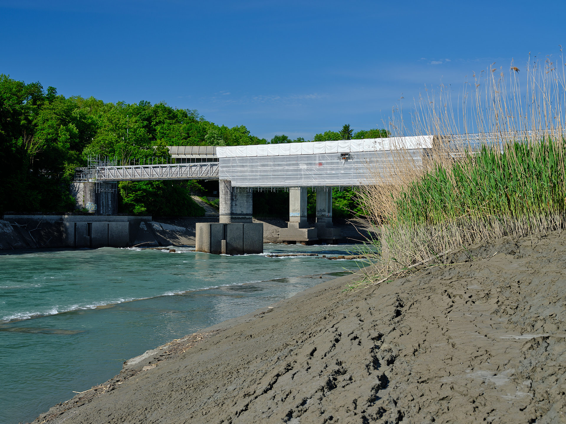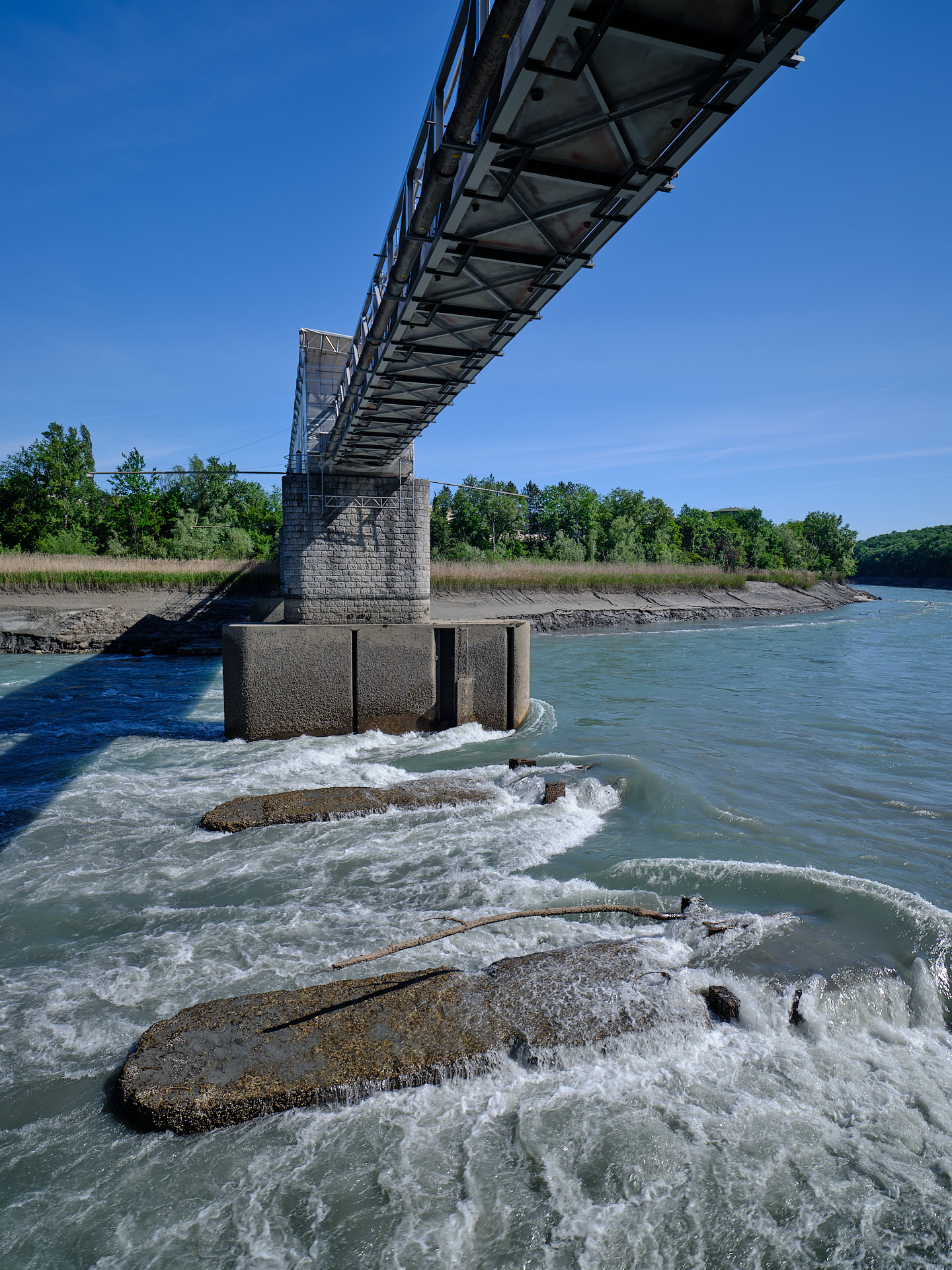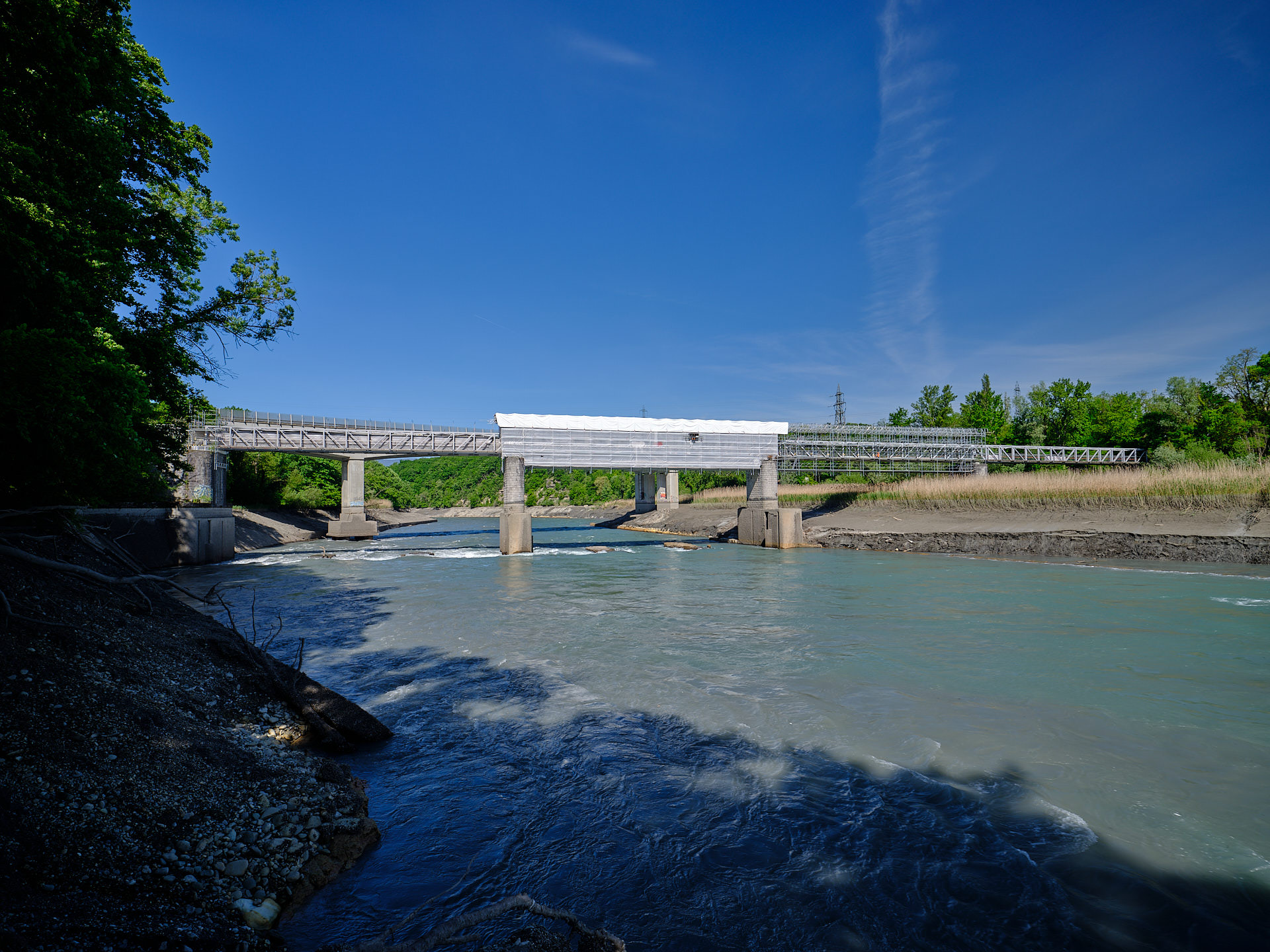 Une première série d’images est réalisée fin mai 2021, durant les travaux profitant d’un abaissement du niveau du Rhône qui a lieu tous les quatre ans pour la gestion sedimentaire (voir ici).