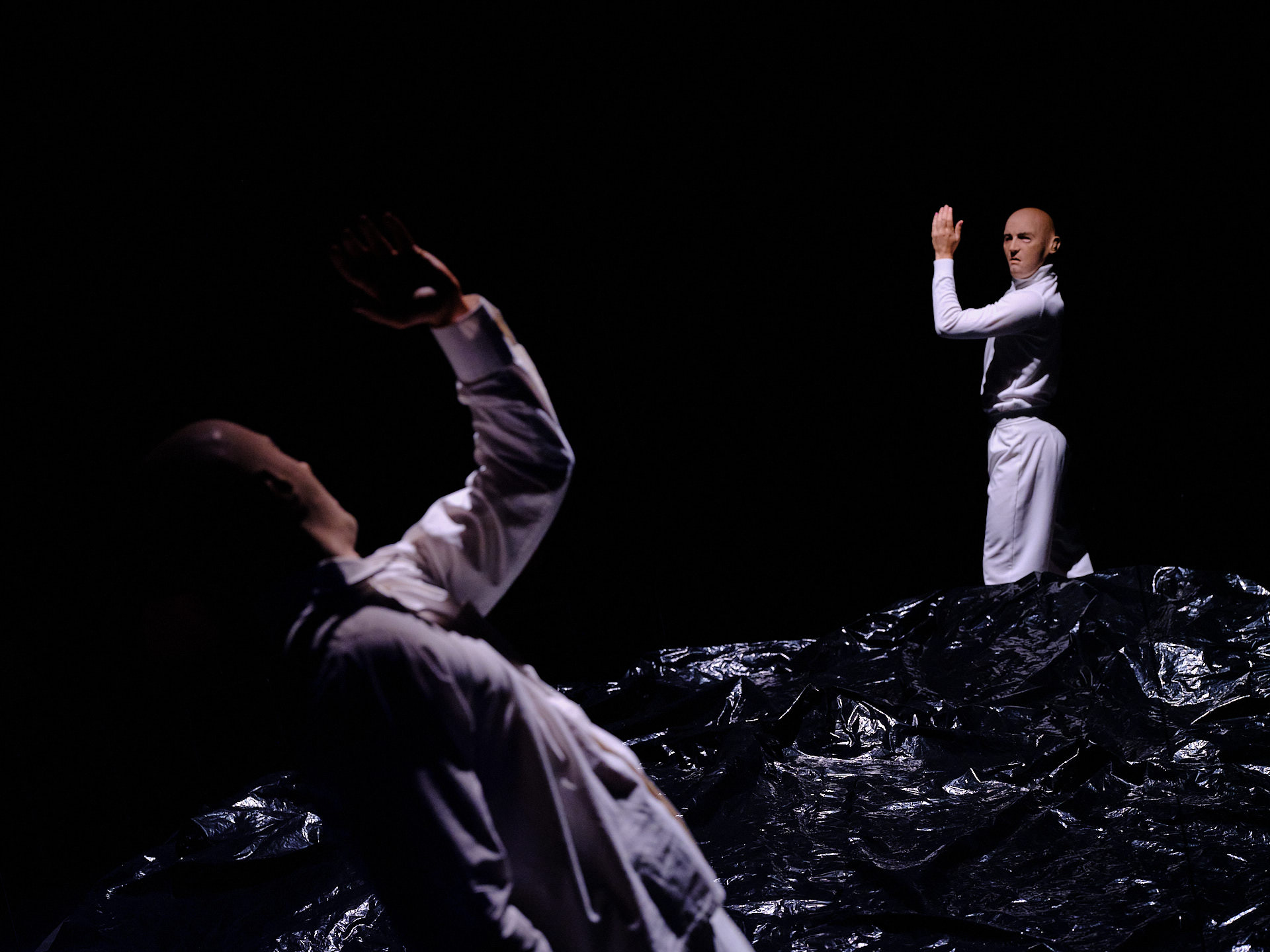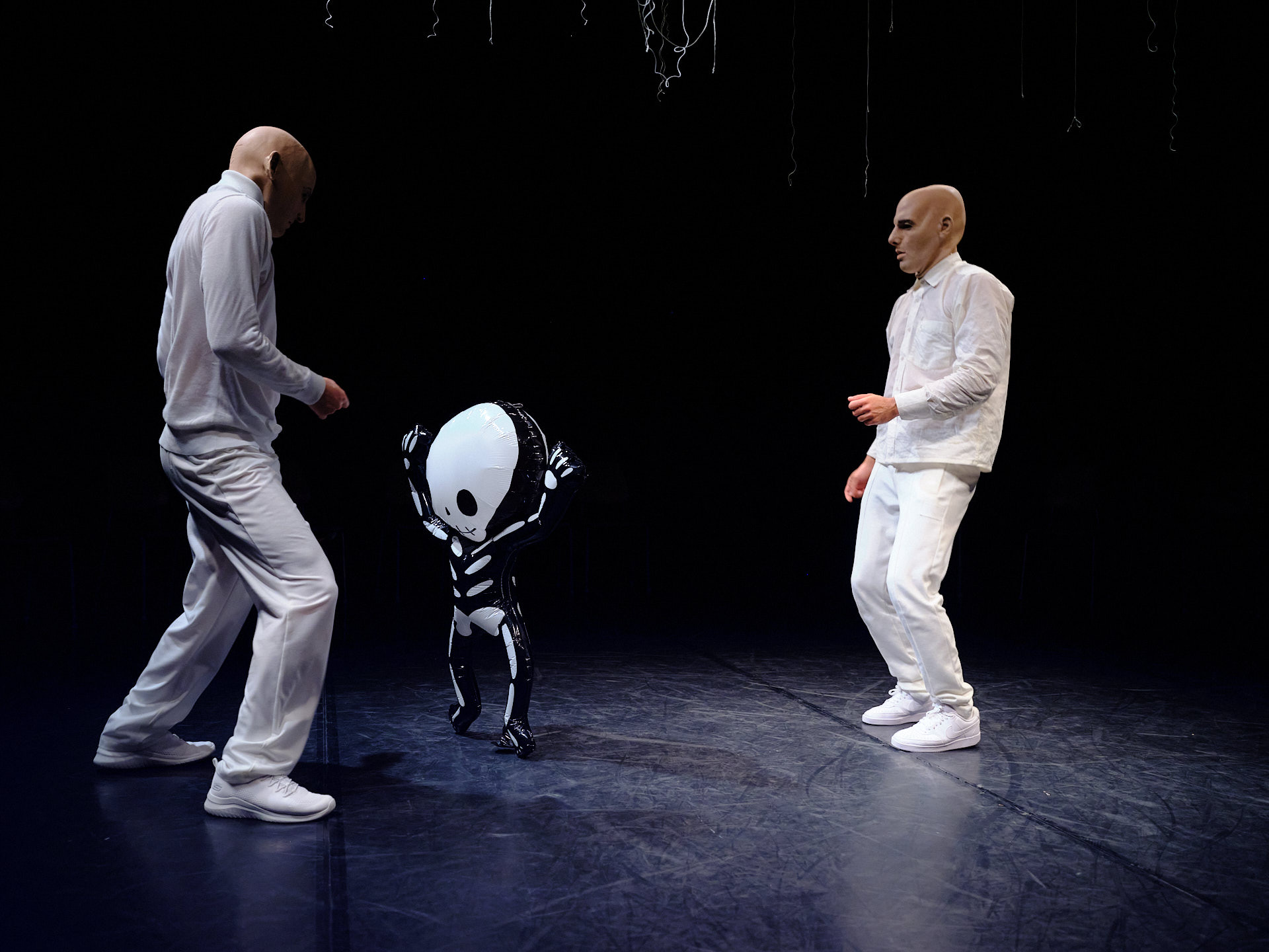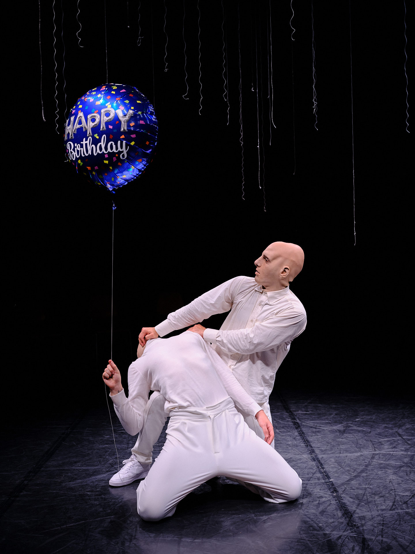 On ne sait pas bien qui ils sont… Deux clones chargés de nous distraire, de mettre en exergue notre gravité et notre désir d’élévation, de procéder à une sorte de cérémonie, de nous consoler peut-être.