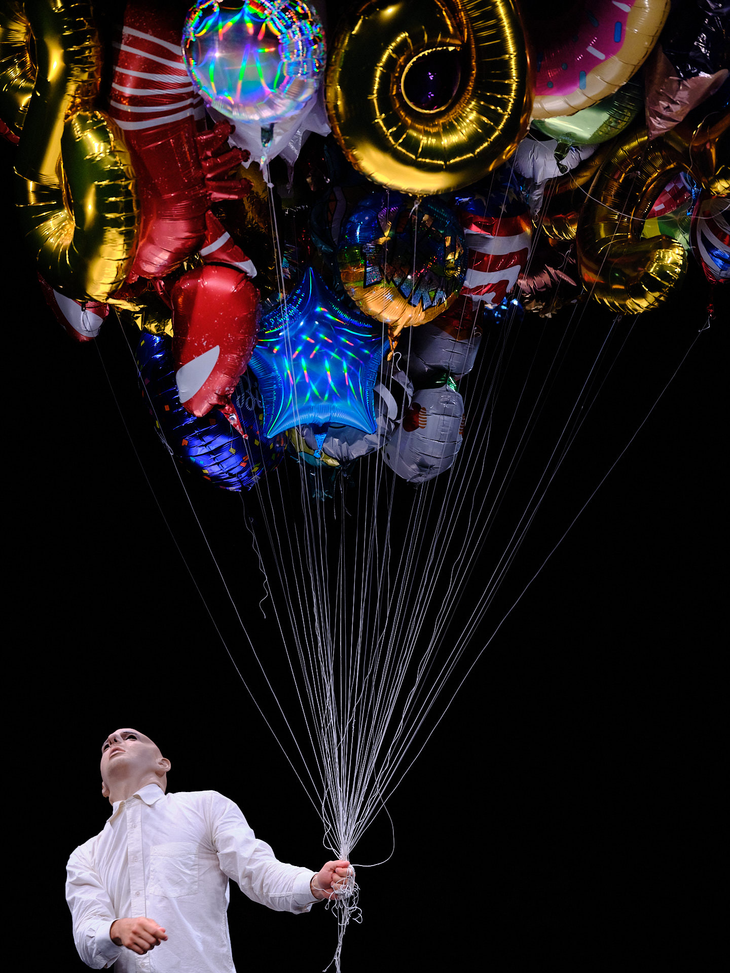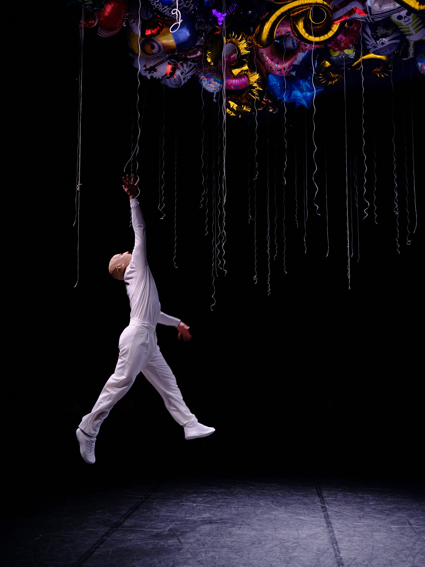 Philippe Saire a mandaté Philippe Weissbrodt pour réaliser les photographie de ce cinquième volet d’une série de pièces chorégraphiques en convergence avec les arts visuels: Salle des Fêtes. Après les succès de Black Out, NEONS, Vacuum et Hocus Pocus (jeune public), ce nouvel opus part d’un jeu avec les ballons de fête.