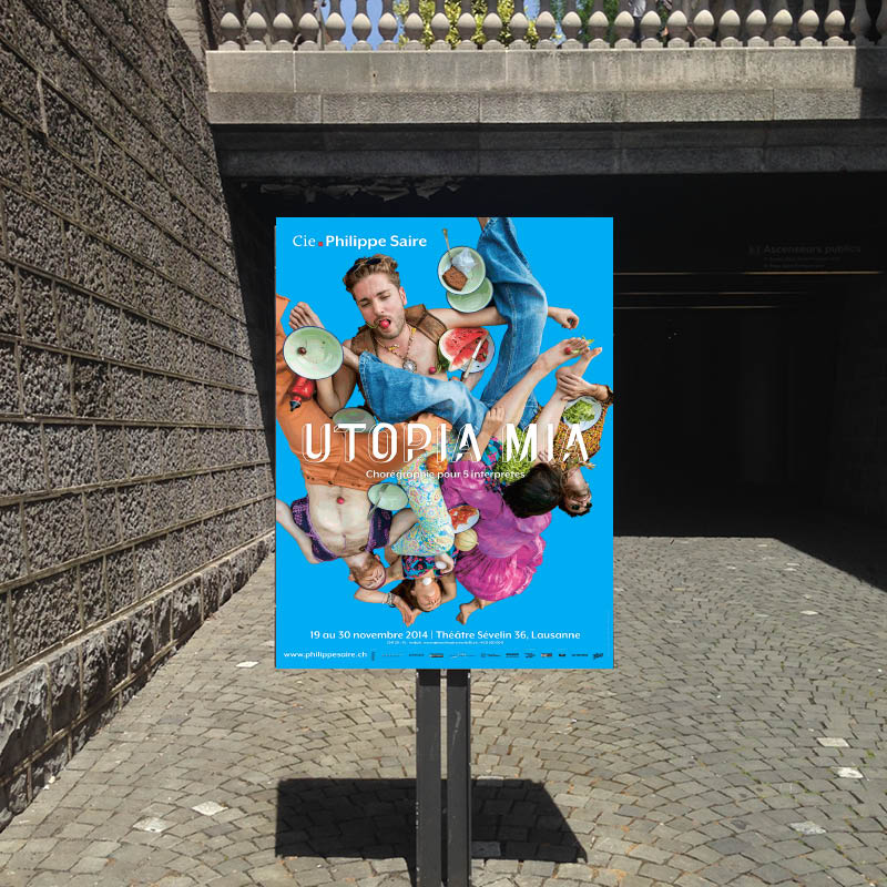 Dans Utopia Mia, spectacle créé en 2014 par la Compagnie Philippe Saire à Lausanne, le chorégraphe offre sa vision personnelle de l’utopie, inspiré par les grands rêves communautaires qui ont accompagné son passage à l’âge adulte dans les années 1970 et ravivés à sa mémoire par le mouvement des indignados de Madrid.