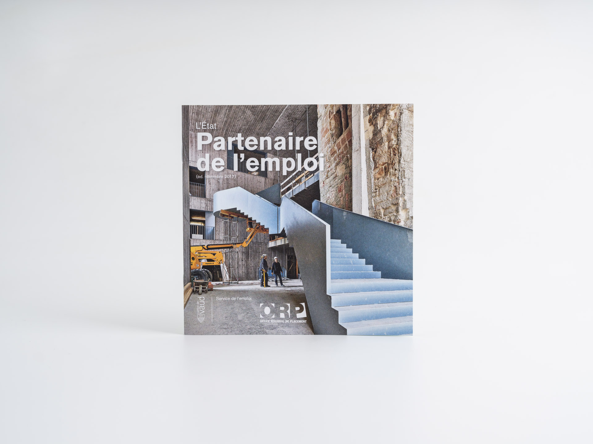 Cette brochure est destinée aux entreprises approchées par les conseillers du service de l’emploi pour le placement de demandeurs d’emploi. Elle présente les différentes solutions offertes par le canton de Vaud (stages, allocations, gain intermédiaire…). Elle est agrémentées de photographies du chantier du Parlement vaudois (© Rémy Gindroz), du service de communication du CHUV (SAM), ainsi que de Philippe Weissbrodt.
