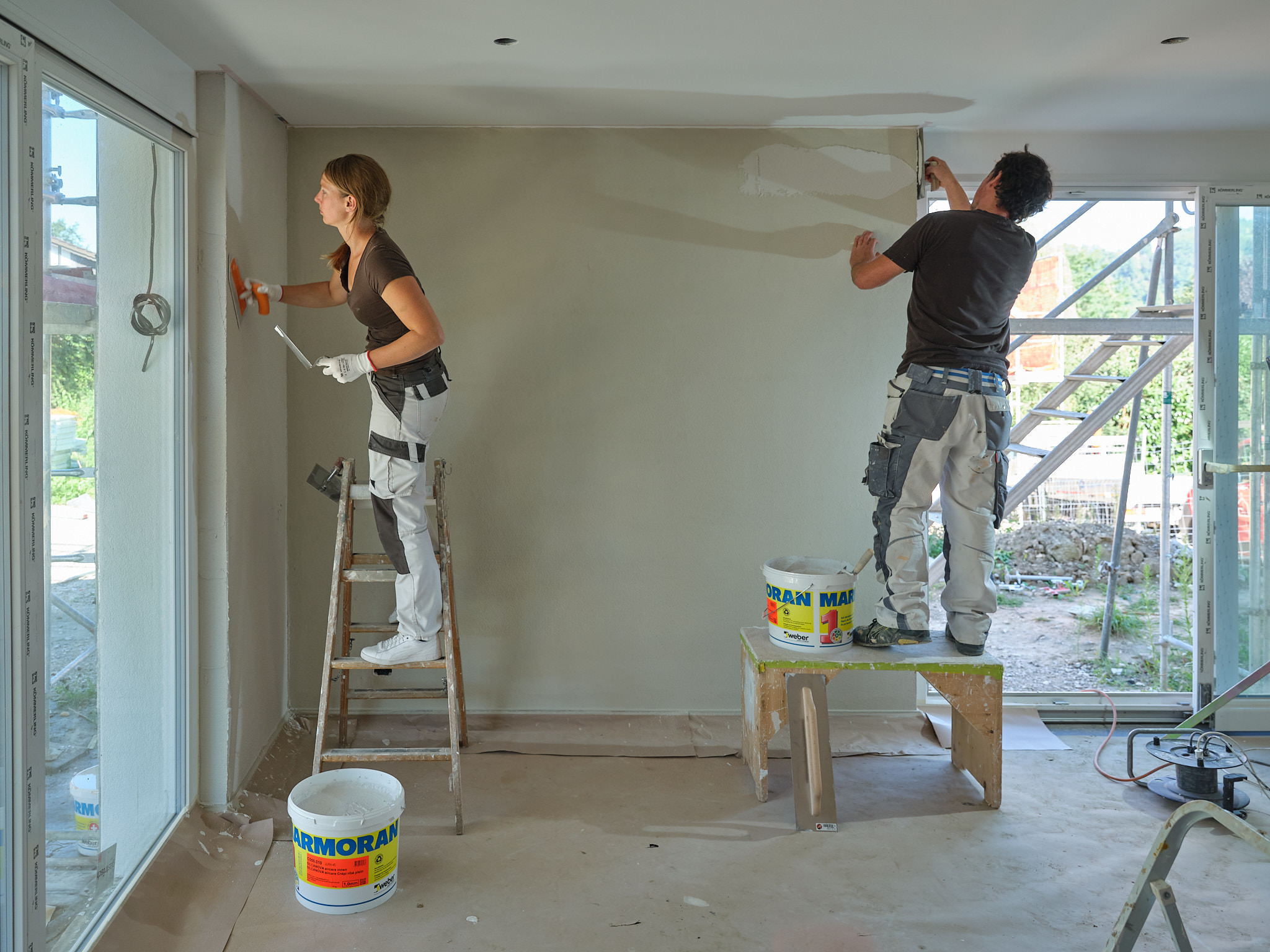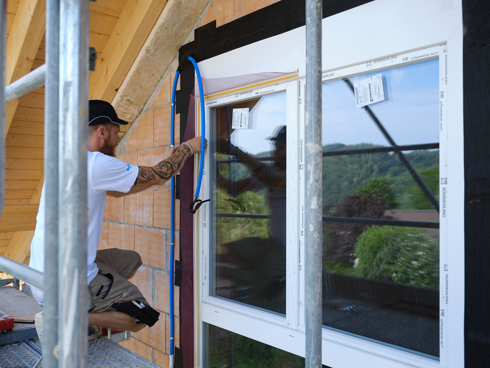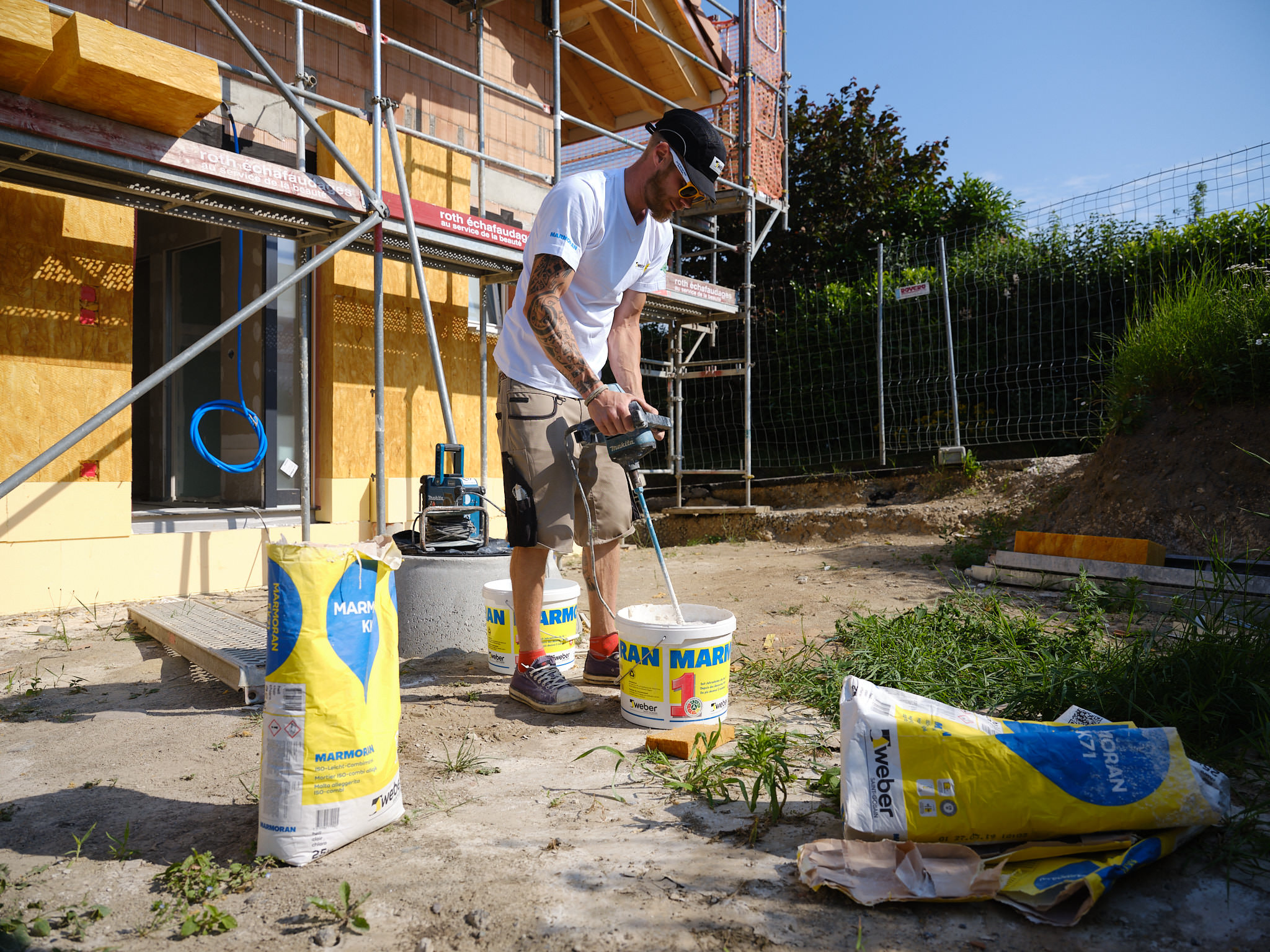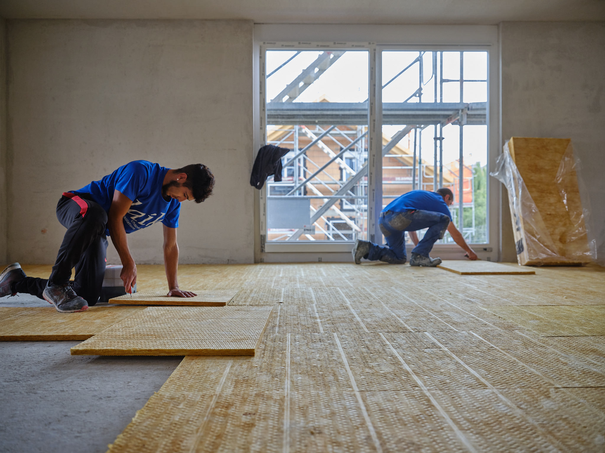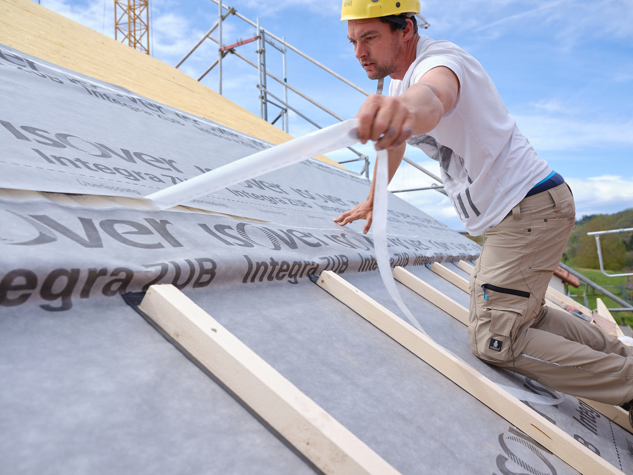Isover a mandaté Philippe Weissbrodt pour réaliser le suivi de chantier photographique et vidéo d’une villa individuelle intégrant plusieurs de ses produits, en particulier les premiers panneaux solides en fibre de verre Isorigid, directement sur les chevrons de toiture, ainsi que d’autre produits du groupe Saint-Gobain).